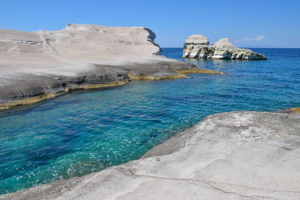 Milos – The lunar landscape of Sarakiniko is the island’s most famous beach but Papafragas and Tsigrado are also postcard-perfect.