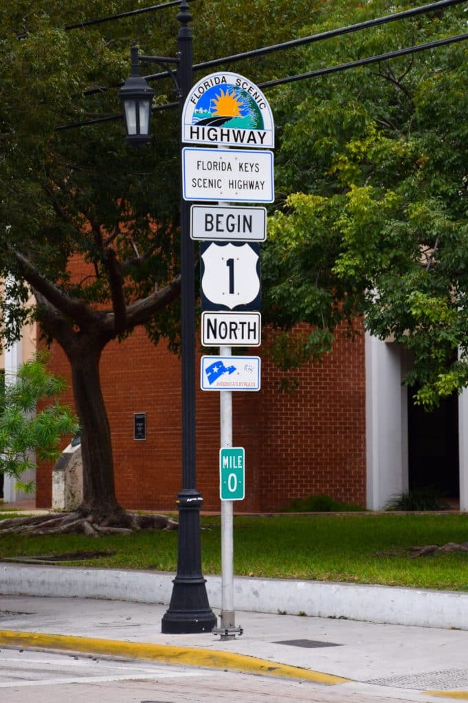 The Mile Marker “0” sign marks the beginning of US Route 1 which stretches all the way up the east coast ending in Maine. Don’t blink or you’ll miss it.