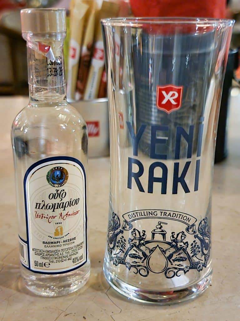 It’s also typically accompanied by a few small plates of “mezedes” (Greek tapas) like nuts, chips, or olives. Don’t shoot it unless you want an epic hangover. It’s more of a cultural experience.
